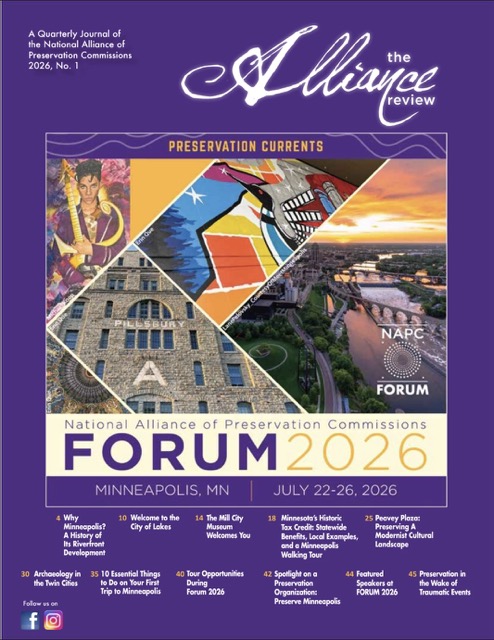 Since its initial publication in 1984, The Alliance Review has been a treasured resource for preservationists. NAPC members receive the latest issue directly to their email inbox throughout the year. Below are links to issues going back to 2018. Issues published within the last twelve months are reserved for NAPC members only.