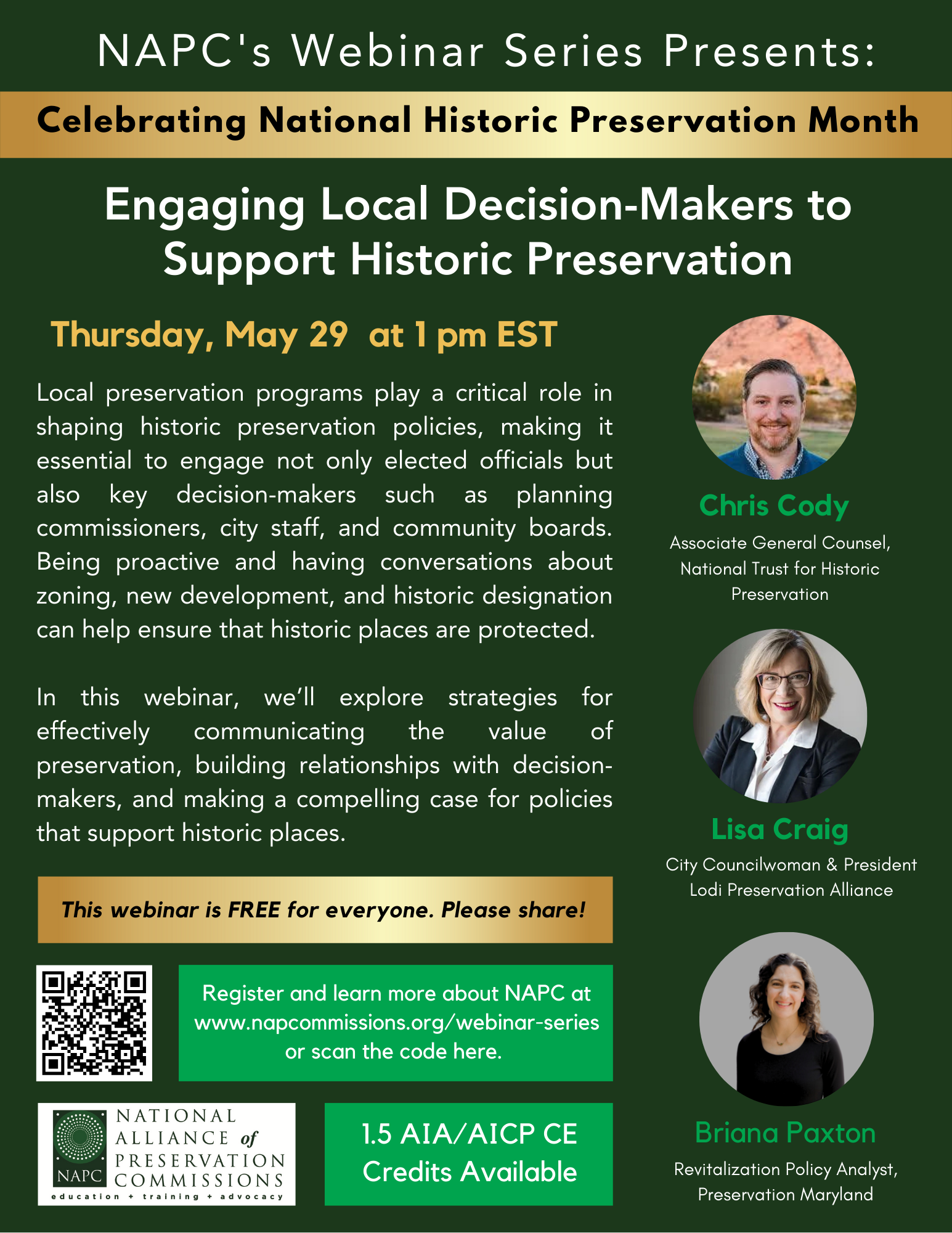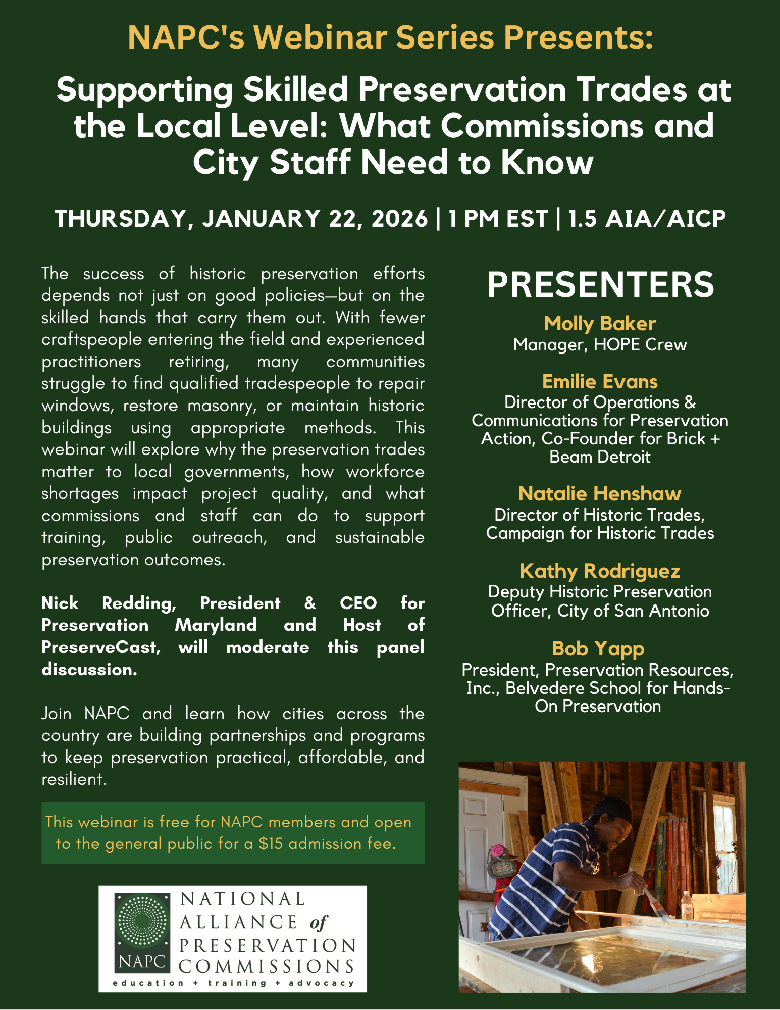 Learn MoreNAPC is honored to serve as a national voice for local preservation. This would not be possible without support from members and partners around the country. Learn more about how you can further our mission to build strong local preservation programs and leaders through education, training and advocacy.