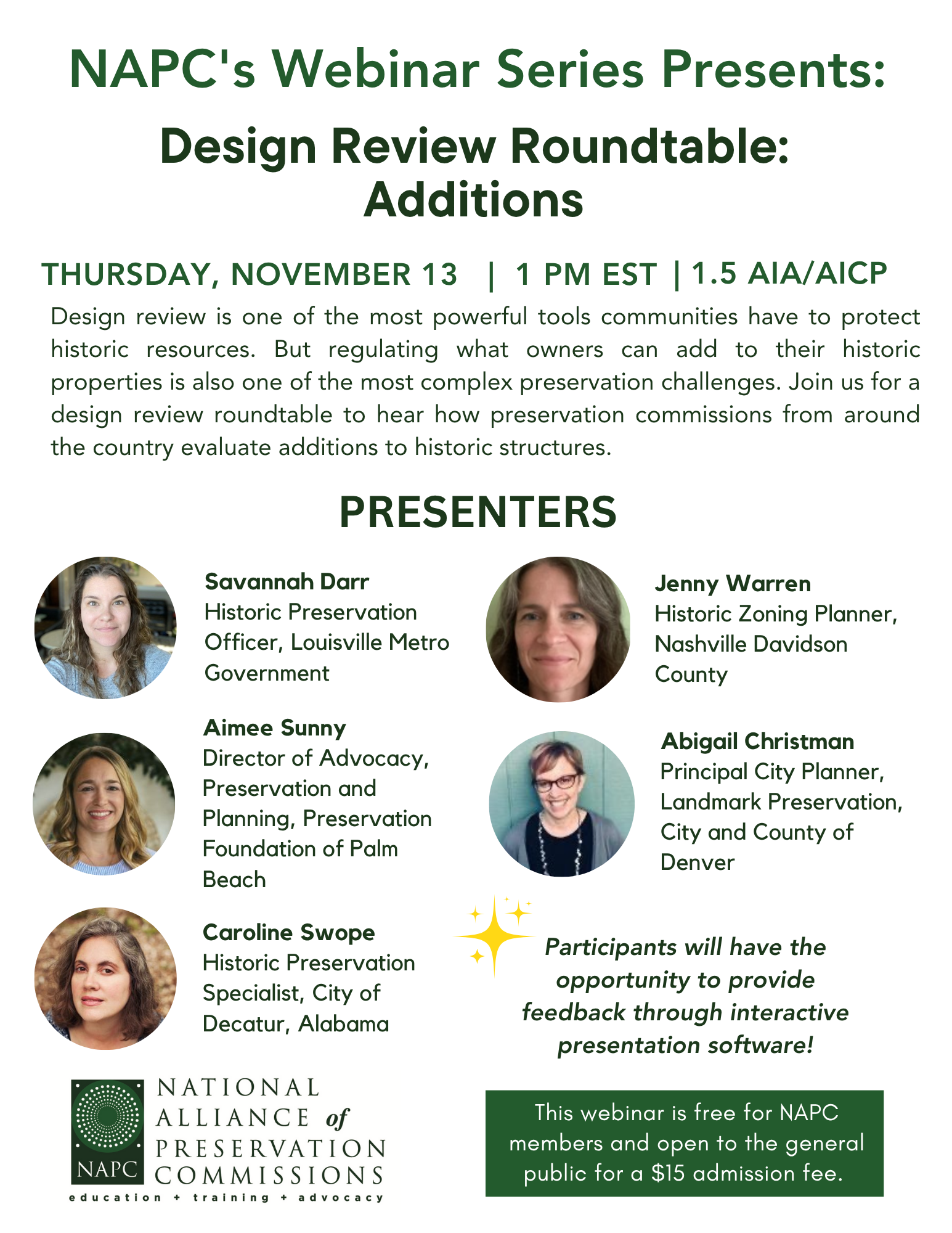 As a member of the National Alliance of Preservation Commissions, you become part of a national network of historic preservation commissions, boards of architectural review, staff, local and state preservation nonprofits, and residents of historic districts who value their historic resources.